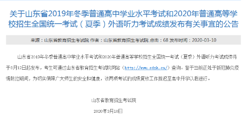 关于山东省2019年冬季普通高中学业水平考试...